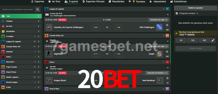 A aposta 20bet oferece aos jogadores a experiência mais conveniente de apostas em eSports!